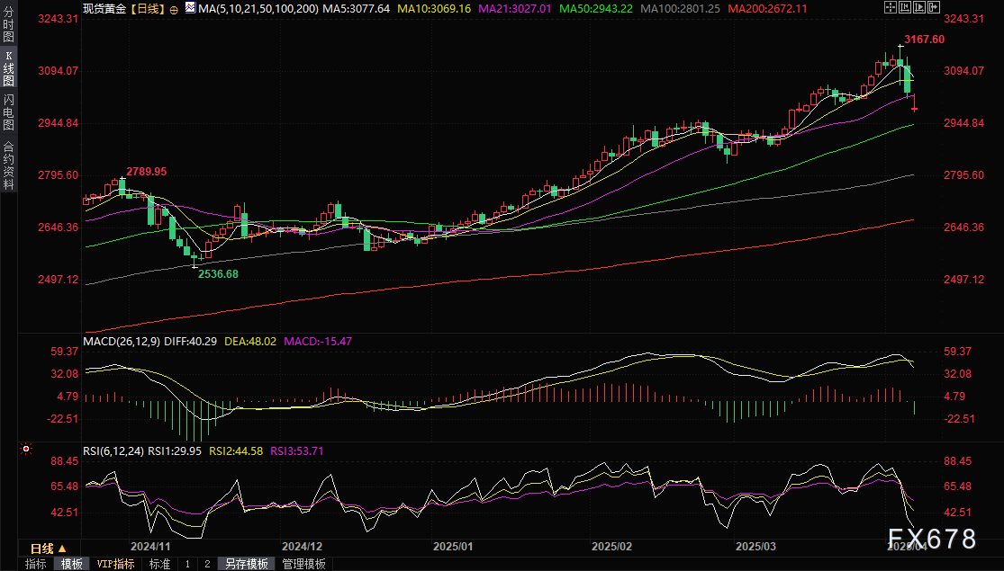 汇通财经APP讯——周一(4月7日)亚市早盘,现货黄金延续跌势,一度失守3000整数关口,刷新3月13日以来低点至2976.97美元/盎司,因国际贸易担忧情绪升温,美国股指期货继续大跌,日本、澳大利亚和新西兰股市也跟随跌势,投资者继续抛售黄金以弥补他们在更广泛的市场崩溃中的损失。上周五欧美股市大跌,投资者当时已经抛售黄金,导致现货黄金上周五大跌2.47%,收报3036.98美元/盎司。 美国华尔街股市上周五连续第二日收跌,纳斯达克指数确认处于熊市,道琼斯工业指数确认处于修正区域,全球贸易战升级引发了自新冠疫情以来的最大抛售。道琼斯工业指数、标普500指数和纳斯达克指数均创美国总统特朗普第一任期内新冠疫情引发全球恐慌以来的最大两日跌幅。 上周四和上周五,道指下跌9.3%,标普500指数下跌10.5%,纳指下跌11.4%。周五,纳斯达克指数下跌962.82点,或5.82%,至15587.79点。道琼斯工业指数下跌2231.07点或5.50%,至38,314.86点。标普500指数下跌322.44点,跌幅5.97%,收于5074.08点。 欧洲股市上周暴跌,泛欧STOXX 600指数和德国DAX指数确认进入修正区间,上周五泛欧STOXX指数收跌5.1%,创下自2020年新冠疫情引发大跌以来的最大单日跌幅。德国DAX指数和欧元区蓝筹股指数也确认了它们正处于修正区间,分别下跌了5%和4.6%。法国股市下挫4.3%,英股富时指数收低4.95%。 数以千计的抗议者周六(4月6日)聚集在华盛顿特区和美国各地,这是约 1200 场示威活动的一部分,预计将成为自特朗普总统及其亿万富翁盟友马斯克发起快速改革政府和扩大总统权力的努力以来规模最大的单日抗议活动。据活动网站称,约有 150 个活动团体报名参加。计划在美国 50 个州以及加拿大和墨西哥举行抗议活动。 据路透社周六(4月6日)报道,欧盟国家计划在未来几天反制美国加征关税。欧盟可能会对价值高达280亿美元(约合人民币2039亿元)的美国商品采取首轮反制措施。 报道表示,负责协调欧盟贸易政策的欧盟委员会将于当地时间7日晚间向成员国提交一份美国输入欧盟国家的产品清单,以对美国商品征收额外关税。此举是针对美方早前加征的钢铝关税,而非最新的更广泛对等关税。预计清单将包括美国肉类、谷类、葡萄酒、木材、服饰,以及口香糖、牙线、吸尘器和卫生纸。 欧盟将于当地时间7日上午在卢森堡举行美方宣布对等关税以来的首次全体政治会议,届时27个成员国的贸易官员将就关税影响以及应对方案进行讨论。欧盟外交官表示,无论如何,欧盟初步反制关税措施将于当地时间9日表决并有望获得批准。此外,欧盟相关官员将在当地时间7日、8日与欧洲钢铁、汽车和制药行业的首席执行官会谈,以评估关税影响并确定下一步行动。 此外,中方“11箭齐发”,国务院关税税则委员会、商务部、海关总署接连发布多项对美反制措施,包括自4月10日12时01分起,对原产于美国的所有进口商品加征34%关税。 周一亚市早盘,股市延续跌势。美国标普500股指期货一度下跌5.44%至2024年1月以来新低;纳斯达克股指期货一度下跌6.15%,道琼斯股指期货一度下跌4.76%至2023年12月以来新低,这促使投资者进一步抛售黄金以满足股市的追加保证金需求。 渣打银行分析师Suki Cooper说:我们倾向于将黄金视为一种流动性资产,用于满足其他地方的追加保证金要求,因此,考虑到黄金在投资组合中的作用,黄金在风险事件发生后出现抛售并不罕见。它的表现符合历史趋势。 SLC Management董事总经理Dec Mullarkey表示:“目前最大的问题是不确定性,而且我们甚至还未达到政策不确定性的顶峰。” 曾在选举活动中公开支持特朗普的激进投资者比尔·阿克曼在X平台上发帖称,“大规模且不成比例的关税”风险“摧毁了我们作为贸易伙伴、经商地以及投资市场的信心”。他敦促特朗普在周一叫停关税措施。“否则,我们将迎来一场自我诱发的经济核冬天,我们应该开始做好准备”。 布朗兄弟哈里曼表示,预计关税对市场的影响在本周将继续存在。特朗普政府官员已经表示,没有计划改变政策来应对市场抛售。鉴于此,股市可能会继续下跌,美国国债可能会继续上涨。 美国总统特朗普周一(当地时间周日晚间)表示,并非故意操纵市场抛售。已与欧洲和亚洲领导人就关税问题进行了交谈。“我们要扭转局面,而且要迅速扭转。总有一天,人们会意识到关税对美国来说是一件非常美好的事情!” 需要提醒的是,投资者仍需留意逢低买盘和避险买盘的支撑情况。受央行强劲购买及其作为经济和地缘政治不确定性的安全对冲工具的整体吸引力推动,黄金今年仍上涨了逾13%。 美国联邦基金期货在早盘交易中猛涨,美国联邦基金期货暗示美联储今年将降息120个基点(4.8次)。 贸易战全面爆发的担忧、欧盟对美国全面关税可能采取的反制措施、美国通胀数据以及新西兰央行的利率决议将令交易员本周保持警惕。 在围绕美国关税的戏剧性事件之后,本周的美国事件日程较为平淡,较受重视的是周三公布美联储3月会议记录、周四公布美国CPI和每周失业金人数、之后的美国PPI、密西根大学消费者信心和通胀预期。 美联储多位官员本周料就关税对经济的影响和利率前景发表评论。 欧洲方面,周三欧盟成员国对美国钢铝关税反制措施的投票将受到关注。4 月 11 日至 12 日还将举行经济和财政部长非正式会议。欧洲本周公布的数据不多,只有零售销售、德国贸易收支和