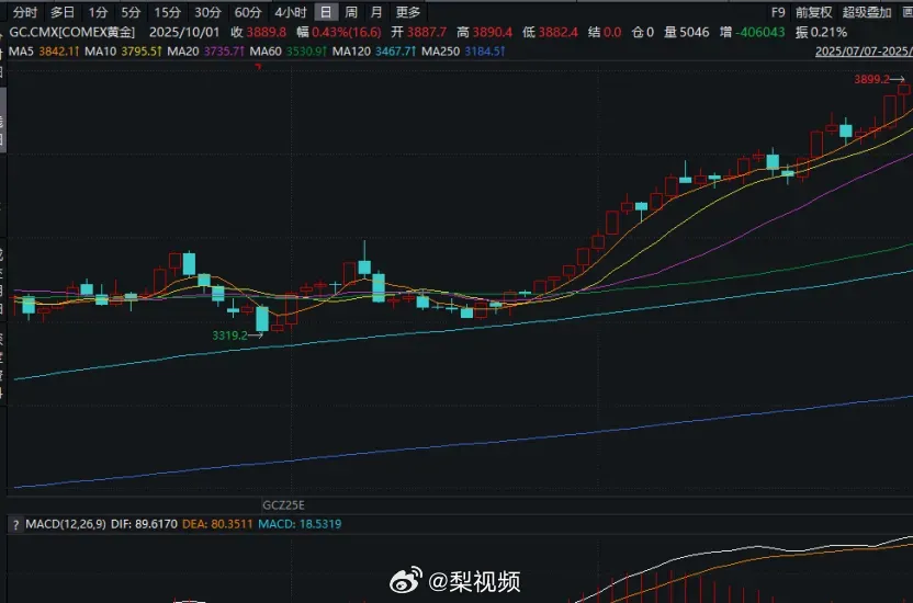 国际金价继续上行。当地时间周二,COMEX黄金期货主力合约盘中逼近3900美元/盎司,再创历史新高。伦敦金现价格也继续上行,盘中亦再创历史新高。