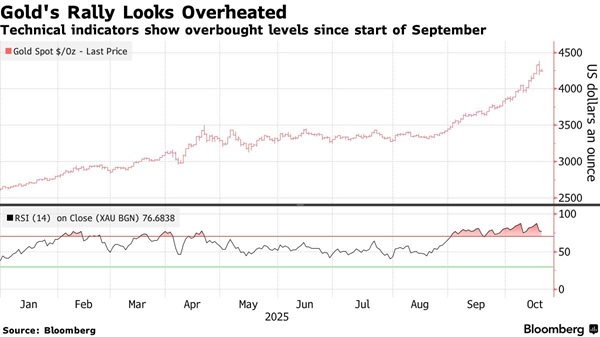 24K99讯 周一(10月20日)亚洲交易时段开始后,黄金价格延续上周五大跌的态势,交易员正在权衡贸易局势的最新发展。 周一亚市早盘,现货黄金一度跌至4218.65美元/盎司,日内大跌32美元。 现货黄金价格上周五在创下历史新高后大幅回落,收盘暴跌近2%,主因是美国总统特朗普的言论缓解避险需求,以及美元走强。 现货黄金上周五收盘暴跌75.09美元,跌幅1.74%,报4250.91美元/盎司;金价盘初曾触及历史高点4379.94美元/盎司。 由于伦敦库存紧张局面有所缓解,白银价格在上一交易日下跌4.3%,周一也小幅下滑。 黄金和白银自8月份开始强劲上涨,并在上周创下新高,但技术指标显示,它们涨势可能过热,为回调埋下了伏笔。 ![]() (截图来源:彭博社) 特朗普引发避险情绪降温 上周晚些时候,美国总统特朗普(Donald Trump)表示乐观,认为与北京官员的谈判可能达成协议以化解贸易危机,并称其威胁的高额关税不可持续,交易员们目前正关注即将举行的中美会谈。切实的进展迹象可能会抑制对黄金和白银等避险资产的需求。 特朗普当地时间上周五表示,他提出的对中国商品加征100%关税的提议是不可持续的。当被问及如此高的关税是否能持续,以及对经济可能造成的影响时,特朗普回答道:“这不可持续,但那就是那个数字。” 特朗普上周五确认将与中国领导人会晤,缓解市场对两国贸易冲突升级的一些不安情绪。 独立金属交易商Tai Wong说:“我认为,特朗普自最初宣布100%关税以来,目前语气已变得较为缓和,这让贵金属交易的热度有所下降。” 继续关注美国地区银行信贷风险 尽管市场避险情绪有所降温,但在上周两家地区性银行披露与涉嫌欺诈相关的贷款问题后,投资者仍对美国金融机构的信用风险感到不安。Zions Bancorp和Western Alliance Bancorp的问题——这两家银行都将于本周公布业绩——或许可以作为风险贷款行为是否正在浮现的早期检验。 今年贵金属价格一路飙升,上周金价已连续第九周上涨。2025年迄今,受央行购金和资金流入交易所交易基金(ETF)的支撑,金价已上涨逾60%。此外,面对地缘政治和贸易紧张局势、财政和债务水平上升以及美联储独立性受到威胁,避险需求飙升也推动了金价上涨。 与此同时,白银价格涨势更为强劲,今年已飙升约80%,其上涨动力源于一些支撑黄金的宏观因素。在伦敦,由于流动性不足,基准价格飙升至高于纽约期货价格,引发全球对白银的追捧。 过去两周,超过2000万盎司白银从纽约商品交易所(Comex)相关仓库流出。其中大部分可能流向伦敦,这应该有助于缓解供应紧张。两大交易中心之间的价差仍然较大,约为每盎司1.35美元,但这远低于上周高达3美元的价差。上周四,白银ETF也流出了1000万盎司的巨额资金。 |