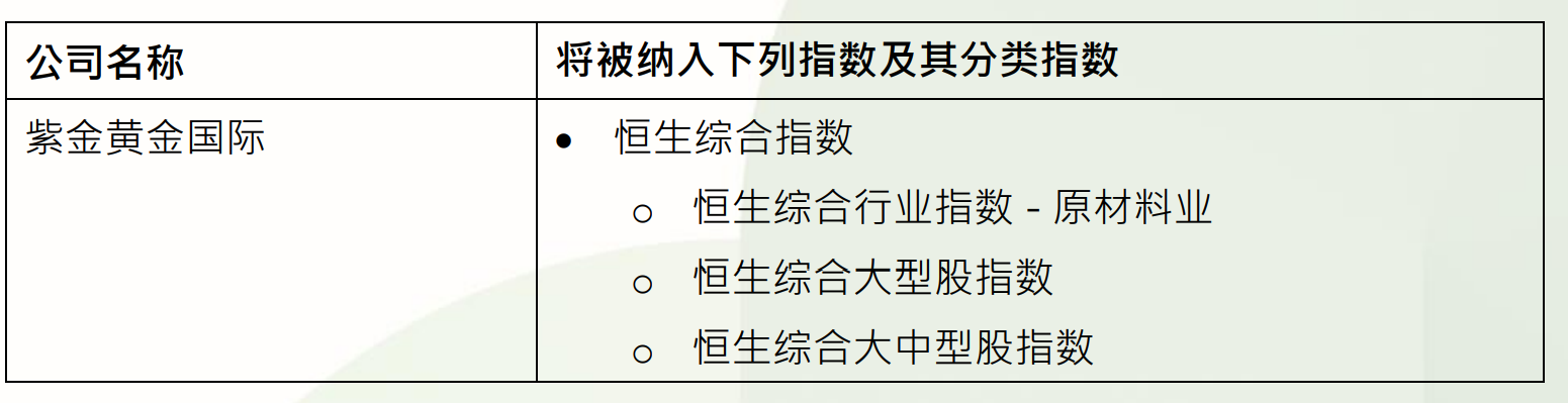 紫金黄金国际获纳入恒生综合指数 10月16日起生效 |