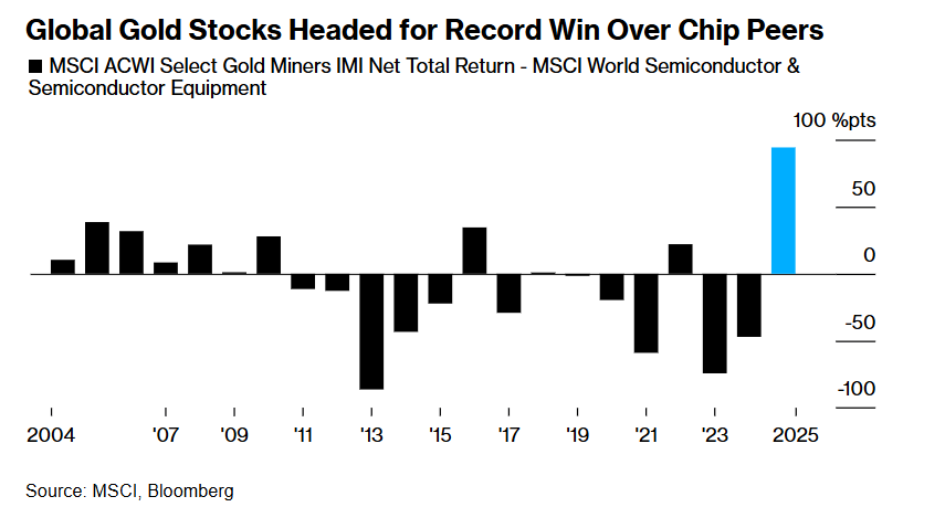 黄金股竟然击败芯片牛市神话! 135%涨幅碾压AI大浪潮驱动的芯片股涨势 |