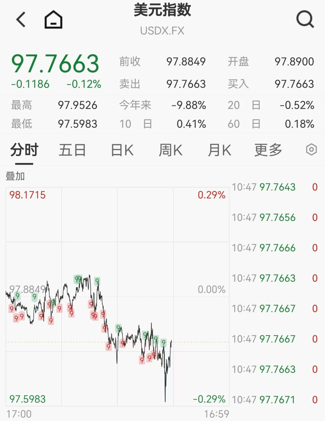 北京时间10月3日晚,美股三大指数高开后,盘中均创历史新高,热门科技股涨跌不一。 特斯拉股价开盘后迅速跳水,截至23:00左右跌超2%。 特斯拉股价10月1日大涨,特斯拉CEO埃隆·马斯克身家一度短暂突破5000亿美元,成为史上首位身家达5000亿美元的人。但10月2日特斯拉收跌超5%,当日市值蒸发约780亿美元(约合人民币5500亿元)。 纳斯达克中国金龙指数跌幅扩至超0.8%,热门中概股普跌,小鹏汽车、理想汽车跌逾4%,蔚来跌逾3%,微博、爱奇艺、小牛电动等跌超2%。 国际金价拉升,COMEX黄金期货站上3900美元/盎司,现货黄金也一度突破3890美元/盎司。COMEX白银涨近2.7%。 美元指数走弱。 消息面上,据新华社报道,当地时间10月1日0时,美国联邦政府时隔近七年再度“停摆”。数十万联邦雇员被迫无薪休假,部分公共服务或暂停、延迟,经济数据发布将受到影响。美国劳工统计局确认,原定于北京时间10月3日晚间公布的美国9月非农就业报告不会公布,市场将失去一项关键的经济数据,交易只能在信息缺口中进行。 瑞银首席经济学家Paul Donovan表示,虽然美国经济数据质量本身也备受质疑,但相比之下,市场能依赖的替代数据(如情绪调查)更差,这将使谣言和不可靠的调查结果在市场中获得更大影响力。 在美国政府“关门”之际,美国的债务“灰犀牛”问题也愈发突出。过去两年,美国预算赤字一直超过GDP的6%,2024财年为6.4%,2023财年为6.2%,这是异常沉重的负担。美国财政部数据显示,2025财年上半年(2024年10月至2025年3月),美国政府财政赤字已超过1.3万亿美元,为半年度历史第二高。(详情) |