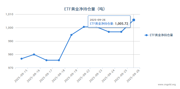 【黄金etf持仓量】9月26日黄金ETF较上一交易日增加8.87吨 |