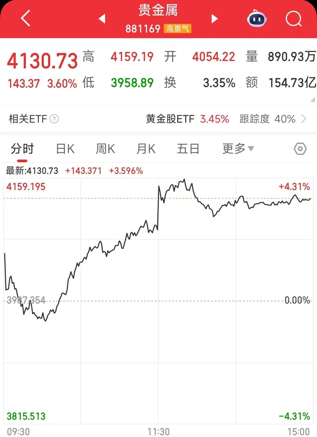 北京时间9月29日,现货黄金价格首次升穿3800美元/盎司,再创历史纪录。截至15时19分,伦敦现货黄金上涨1.31%,盘中最高涨至3819.64美元/盎司。 在国内市场方面,截至收盘,A股黄金概念板块和贵金属行业板块分别上涨2.42%、3.60%。 △A股贵金属行业板块走势图(截图自同花顺) 山西证券研究报告认为,国庆中秋消费旺季临近,黄金首饰需求景气度有望持续。 |