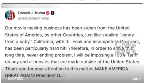 晚间(9月29日),美股集体高开,其中,纳指涨逾0.8%,截至发稿,道指已经飘绿。 中概股方面,纳斯达克中国金龙指数大涨超2%,个股方面,小马智行涨逾8%,老虎证券涨逾7%,新东方涨超7%,阿里巴巴涨逾5%。 原油则暴跌约2.8%,截至发稿最低跌至63.78美元/桶。 黄金方面,现货黄金涨约1.7%,最高升至3831.39美元/盎司,刷新历史新高。 金价之所以连续暴涨,与特朗普再发关税威胁、美国政府存在停摆风险等因素有关。 特朗普:对美国以外制作的电影征收100%关税 9月29日,美国总统特朗普再度发出关税威胁。 据CCTV国际时讯报道,美国总统特朗普今天(9月29日)在社交平台发帖称:“我将对所有在美国以外制作的电影征收100%的关税。” 特朗普在帖文中称:“我们的电影产业被其他国家从美国‘偷走’,就像从婴儿手里抢糖果一样轻而易举。以加利福尼亚州为例,在其软弱无能的州长领导下,受到的打击尤为严重!因此,为了解决这个长期存在、从未得到解决的问题,我将对所有在美国以外制作的电影征收100%的关税。” 特朗普今年5月4日就曾称,将对所有在外国制作的电影征收100%关税。 美国政府存在停摆风险 消息面上,美国“政治新闻网”援引三名匿名知情人士消息报道称,美国总统特朗普将于当地时间29日14时与国会两党高层会面。 “政治新闻网”称,与会者包括美国国会众议长迈克·约翰逊、参议院共和党领袖约翰·图恩、国会参议院民主党领袖查克·舒默以及众议院民主党领袖哈基姆·杰弗里斯。此次会议前不到一周,特朗普曾突然取消与舒默和杰弗里斯的既定会面。 报道称,据知情人士透露,图恩和舒默曾于26日通话,舒默敦促图恩“促成与特朗普总统的会面,因为政府‘停摆’的最后期限迫在眉睫”。知情人士称,此次电话是由舒默发起的。 据介绍,美国联邦政府资金将在9月30日午夜耗尽,若两党届时不能就相关拨款法案协商一致,部分政府机构将面临“停摆”。 美联储官员发声 此外,美联储官员也就美国宏观形势进行表态,9月29日,美联储哈玛克称,关税是通胀故事的重要组成部分。 他表示,服务业部分的通胀仍居高位,这令人担忧;通胀率过高,且趋势朝着不利方向发展。 他认为,目前对美联储而言充满挑战;他预计2027年通胀率回落至2%。 |